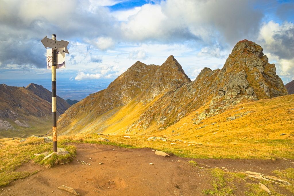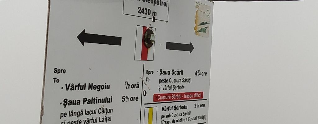 Po podejściu na przełęcz Saua Cleopatrei, idziemy dalej głównym szlakiem, mimo że tabliczka zawiera informacje o niebezpieczeństwie, które na nas tam czeka. Mam dość już schodzenia i podchodzenia obejściem!