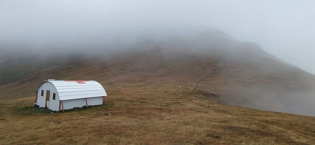 W nocy zmaga się coraz większy wiatr, a jego podrywy uderzają w ten domek tworząc przeraźliwe odgłosy. Tej nocy nie dało się przespać. Rano wstaję niewyspany, a za oknem widać tylko mgłę. Wiatr trochę ucichł ale w zamian zaczął padać deszcz. Według prognozy sprawdzonej przez Tomka po godzinie 11 ma przestać i będzie można wyruszyć w dalszą drogę. W międzyczasie jemy coś ciepłego i odkrywamy zdumiewającą rzecz. Budynek ma działające oświetlenie. Szkoda tylko że już nam ta wiedza nie będzie przydatna.