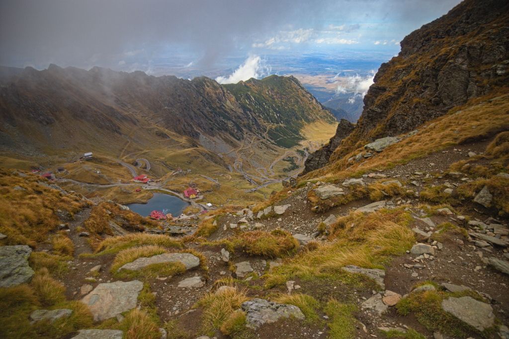 Zaczynamy więc krótkie podejście na przełęcz z której rozciąga się widok na Trasę Transfogaraską. Teraz już tylko albo i aż, rozpoczynamy zejście. Kilkanaście wariantów tego zejścia nie ułatwia nam zadania, a myśl że to wszystko zaraz trzeba będzie podejść, łagodzi tylko fakt szansy zjedzenia czegoś dobrego.
